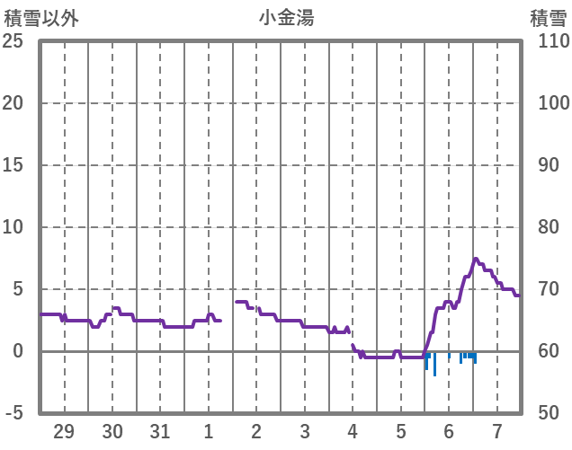 | 日 | 時 | 気温 | 降水 | 風向/風速 | 日照 | 積雪 | 降雪 |