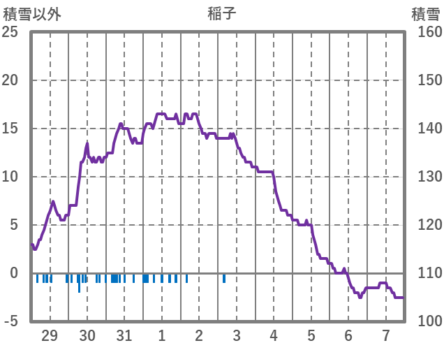 | 日 | 時 | 気温 | 降水 | 風向/風速 | 日照 | 積雪 | 降雪 |