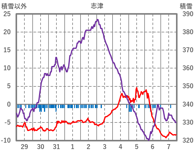 | 日 | 時 | 気温 | 降水 | 風向/風速 | 日照 | 積雪 | 降雪 |