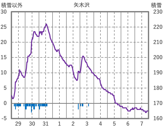 | 日 | 時 | 気温 | 降水 | 風向/風速 | 日照 | 積雪 | 降雪 |