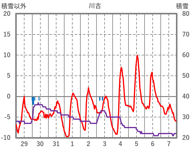 | 日 | 時 | 気温 | 降水 | 風向/風速 | 日照 | 積雪 | 降雪 |
