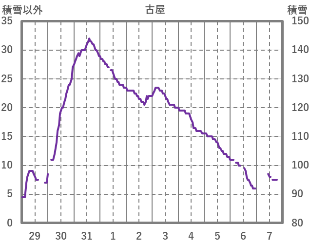 | 日 | 時 | 気温 | 降水 | 風向/風速 | 日照 | 積雪 | 降雪 |