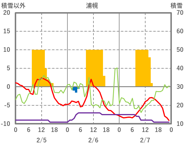 | 日 | 時 | 気温 | 降水 | 風向/風速 | 日照 | 積雪 | 降雪 |