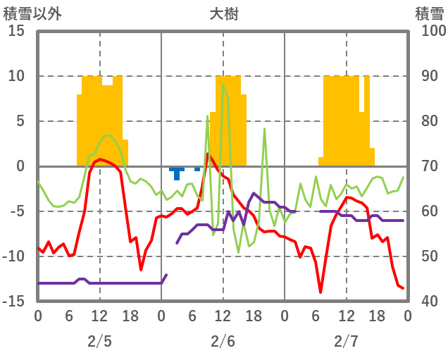 | 日 | 時 | 気温 | 降水 | 風向/風速 | 日照 | 積雪 | 降雪 |