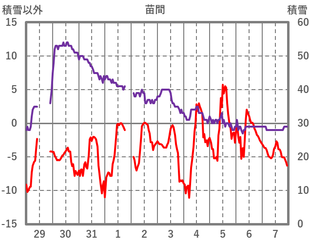 | 日 | 時 | 気温 | 降水 | 風向/風速 | 日照 | 積雪 | 降雪 |
