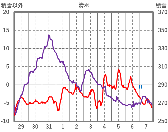 | 日 | 時 | 気温 | 降水 | 風向/風速 | 日照 | 積雪 | 降雪 |