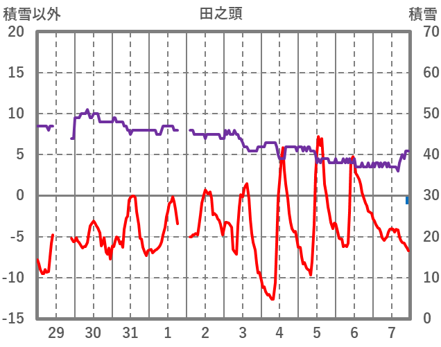 | 日 | 時 | 気温 | 降水 | 風向/風速 | 日照 | 積雪 | 降雪 |