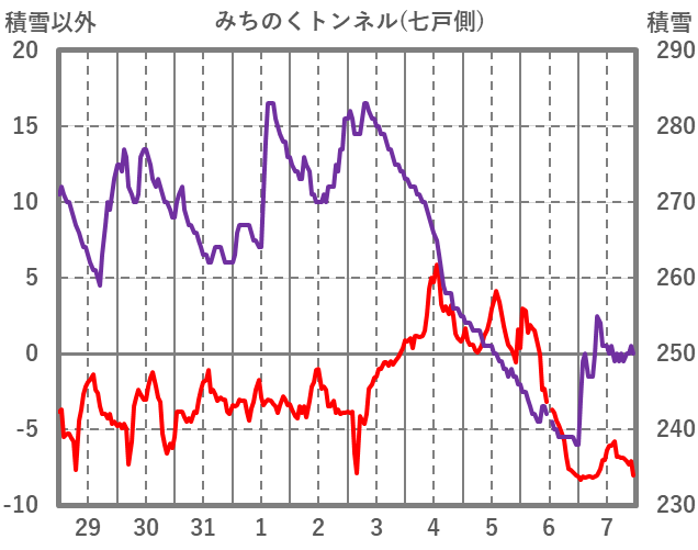 | 日 | 時 | 気温 | 降水 | 風向/風速 | 日照 | 積雪 | 降雪 |