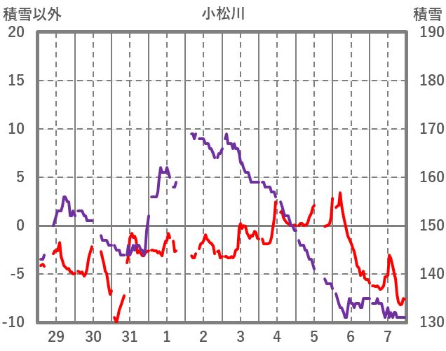 | 日 | 時 | 気温 | 降水 | 風向/風速 | 日照 | 積雪 | 降雪 |
