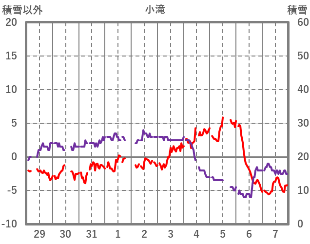 | 日 | 時 | 気温 | 降水 | 風向/風速 | 日照 | 積雪 | 降雪 |