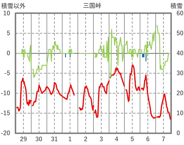 | 日 | 時 | 気温 | 降水 | 風向/風速 | 日照 | 積雪 | 降雪 |