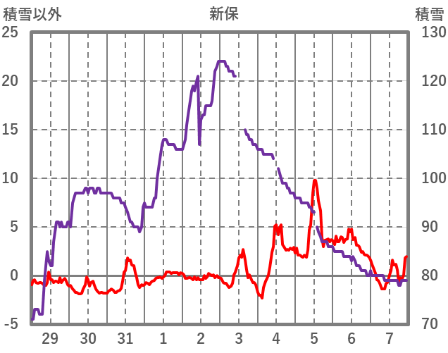 | 日 | 時 | 気温 | 降水 | 風向/風速 | 日照 | 積雪 | 降雪 |