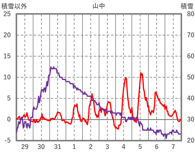 | 日 | 時 | 気温 | 降水 | 風向/風速 | 日照 | 積雪 | 降雪 |
