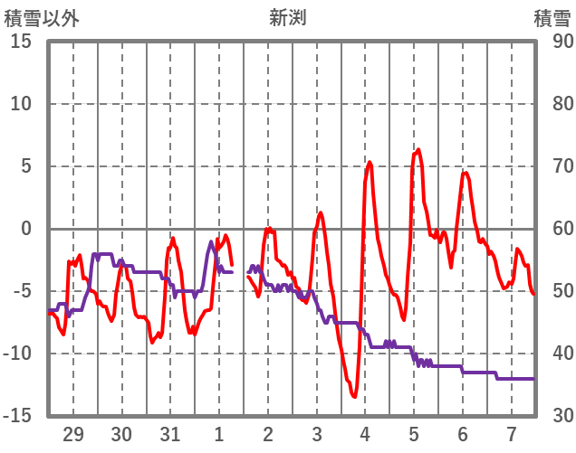 | 日 | 時 | 気温 | 降水 | 風向/風速 | 日照 | 積雪 | 降雪 |