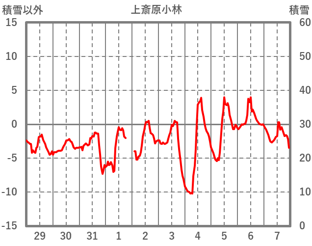 | 日 | 時 | 気温 | 降水 | 風向/風速 | 日照 | 積雪 | 降雪 |