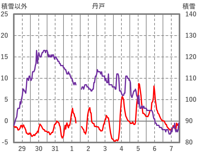 | 日 | 時 | 気温 | 降水 | 風向/風速 | 日照 | 積雪 | 降雪 |