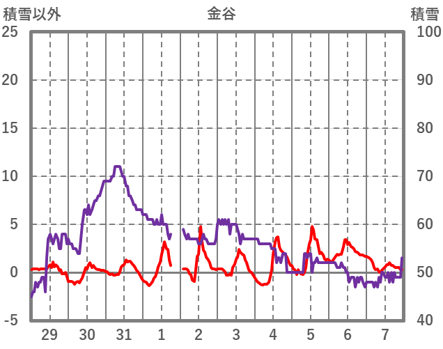 | 日 | 時 | 気温 | 降水 | 風向/風速 | 日照 | 積雪 | 降雪 |