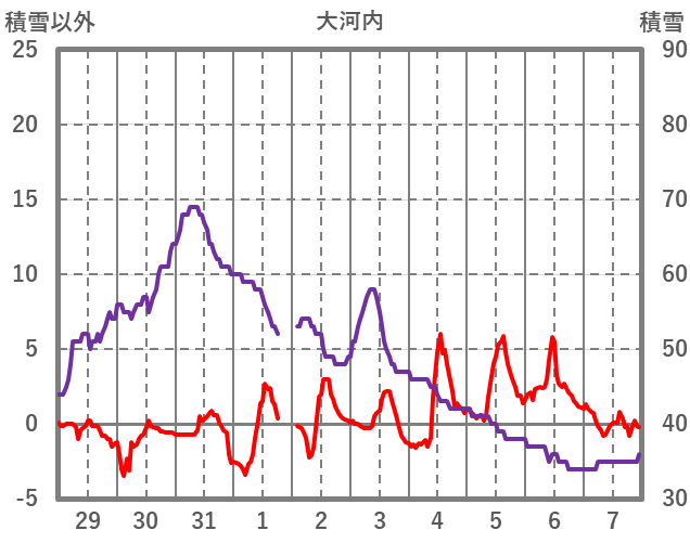 | 日 | 時 | 気温 | 降水 | 風向/風速 | 日照 | 積雪 | 降雪 |