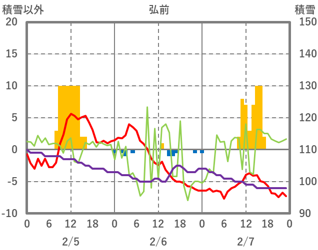 | 日 | 時 | 気温 | 降水 | 風向/風速 | 日照 | 積雪 | 降雪 |