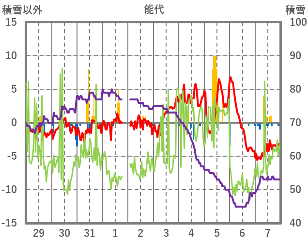 | 日 | 時 | 気温 | 降水 | 風向/風速 | 日照 | 積雪 | 降雪 |