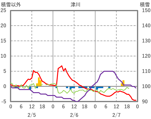 | 日 | 時 | 気温 | 降水 | 風向/風速 | 日照 | 積雪 | 降雪 |