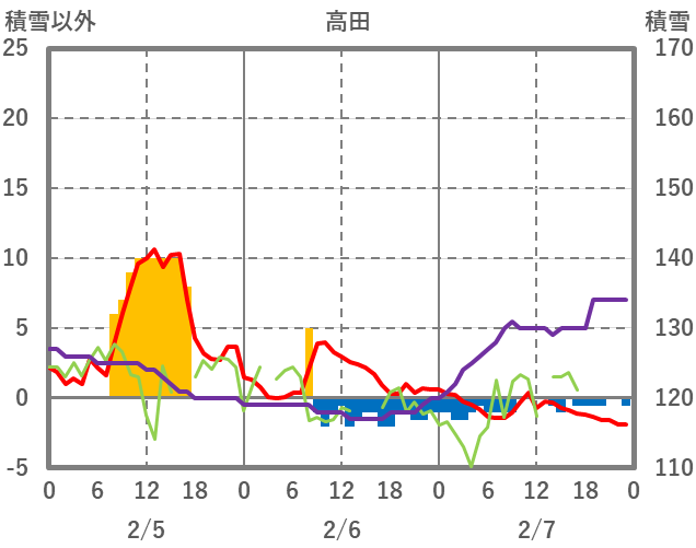 | 日 | 時 | 気温 | 降水 | 風向/風速 | 日照 | 積雪 | 降雪 |