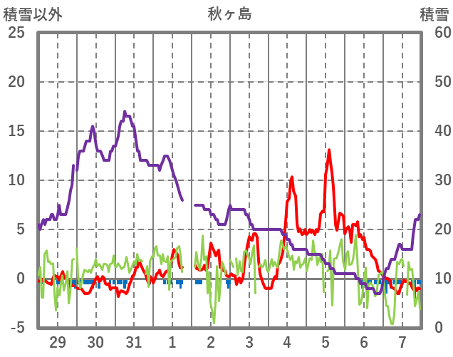 | 日 | 時 | 気温 | 降水 | 風向/風速 | 日照 | 積雪 | 降雪 |