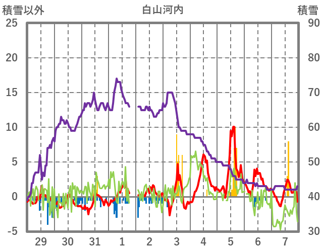 | 日 | 時 | 気温 | 降水 | 風向/風速 | 日照 | 積雪 | 降雪 |