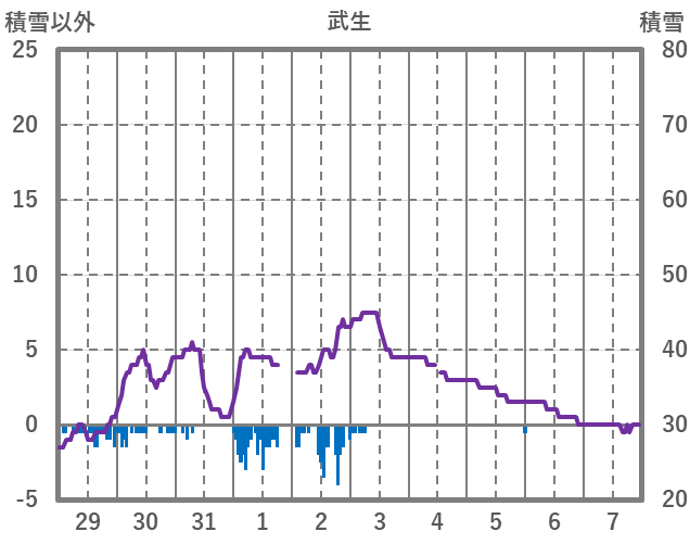 | 日 | 時 | 気温 | 降水 | 風向/風速 | 日照 | 積雪 | 降雪 |