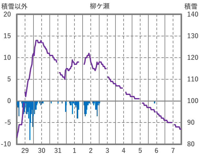 | 日 | 時 | 気温 | 降水 | 風向/風速 | 日照 | 積雪 | 降雪 |