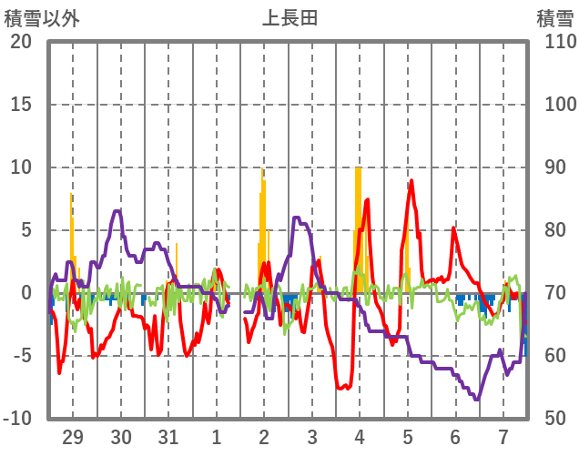 | 日 | 時 | 気温 | 降水 | 風向/風速 | 日照 | 積雪 | 降雪 |