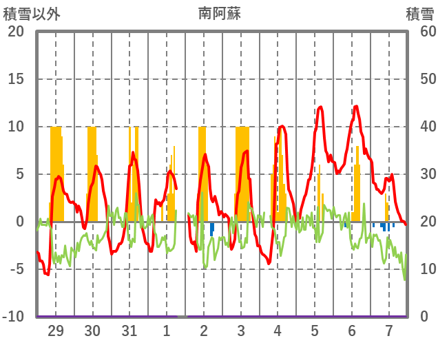 | 日 | 時 | 気温 | 降水 | 風向/風速 | 日照 | 積雪 | 降雪 |