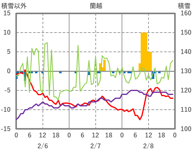 | 日 | 時 | 気温 | 降水 | 風向/風速 | 日照 | 積雪 | 降雪 |