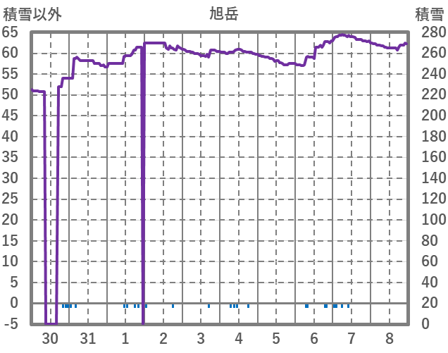 | 日 | 時 | 気温 | 降水 | 風向/風速 | 日照 | 積雪 | 降雪 |