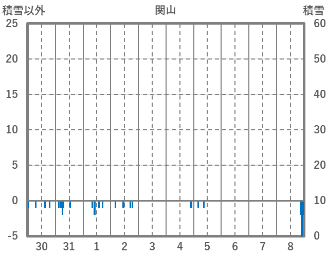 | 日 | 時 | 気温 | 降水 | 風向/風速 | 日照 | 積雪 | 降雪 |
