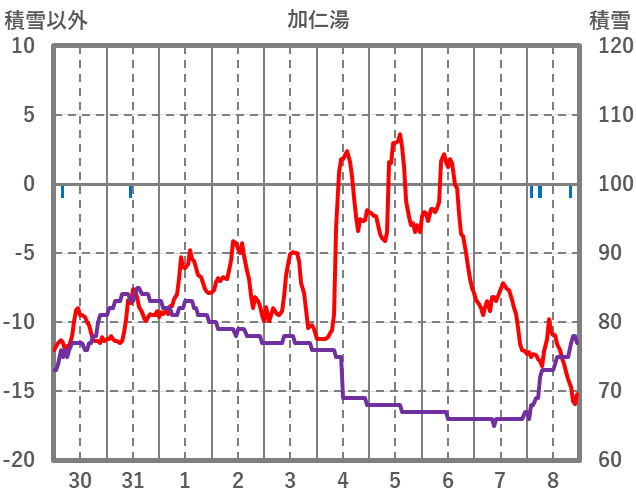 | 日 | 時 | 気温 | 降水 | 風向/風速 | 日照 | 積雪 | 降雪 |