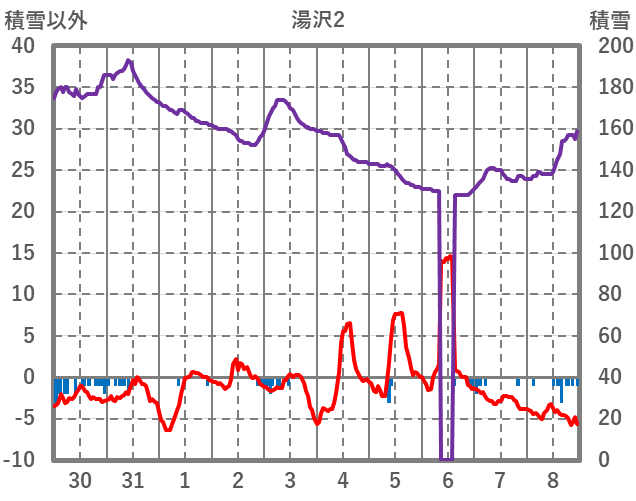| 日 | 時 | 気温 | 降水 | 風向/風速 | 日照 | 積雪 | 降雪 |