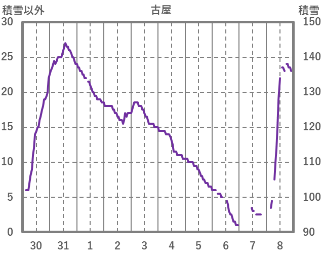 | 日 | 時 | 気温 | 降水 | 風向/風速 | 日照 | 積雪 | 降雪 |