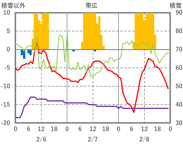 | 日 | 時 | 気温 | 降水 | 風向/風速 | 日照 | 積雪 | 降雪 |