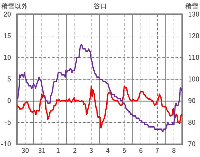| 日 | 時 | 気温 | 降水 | 風向/風速 | 日照 | 積雪 | 降雪 |