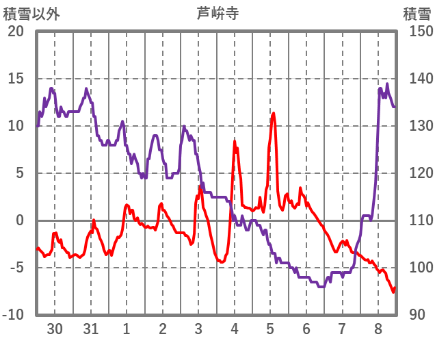| 日 | 時 | 気温 | 降水 | 風向/風速 | 日照 | 積雪 | 降雪 |