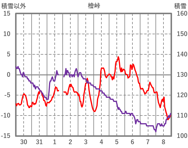 | 日 | 時 | 気温 | 降水 | 風向/風速 | 日照 | 積雪 | 降雪 |