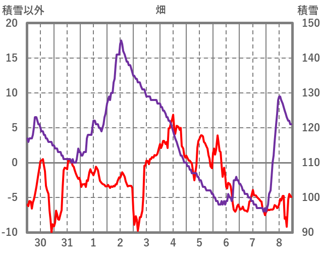 | 日 | 時 | 気温 | 降水 | 風向/風速 | 日照 | 積雪 | 降雪 |