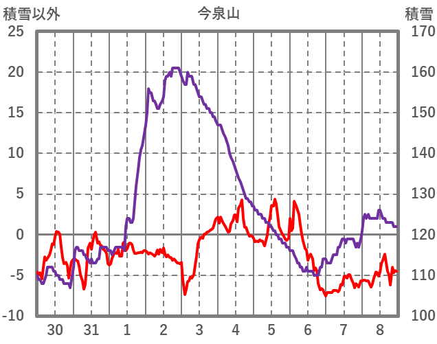 | 日 | 時 | 気温 | 降水 | 風向/風速 | 日照 | 積雪 | 降雪 |