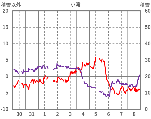 | 日 | 時 | 気温 | 降水 | 風向/風速 | 日照 | 積雪 | 降雪 |