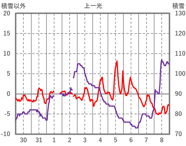 | 日 | 時 | 気温 | 降水 | 風向/風速 | 日照 | 積雪 | 降雪 |