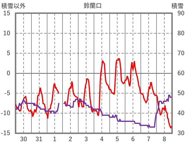 | 日 | 時 | 気温 | 降水 | 風向/風速 | 日照 | 積雪 | 降雪 |