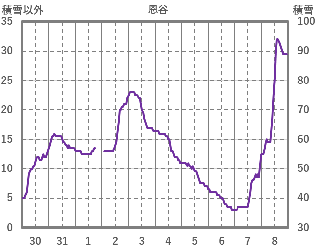 | 日 | 時 | 気温 | 降水 | 風向/風速 | 日照 | 積雪 | 降雪 |