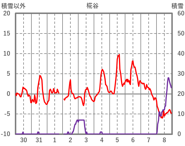 | 日 | 時 | 気温 | 降水 | 風向/風速 | 日照 | 積雪 | 降雪 |