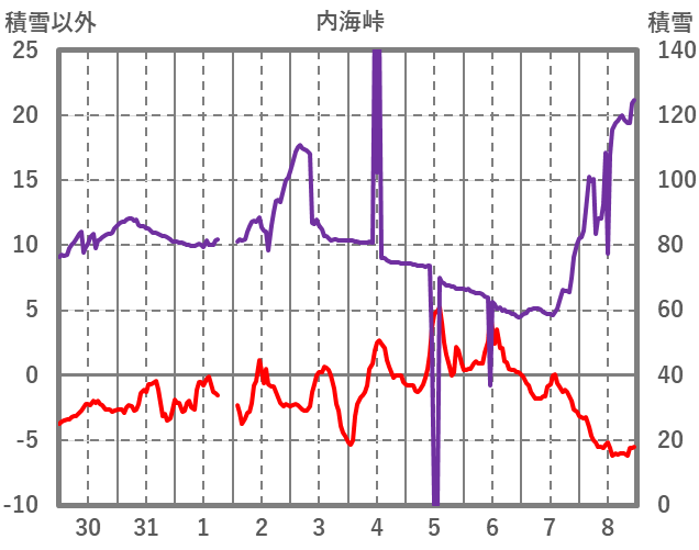 | 日 | 時 | 気温 | 降水 | 風向/風速 | 日照 | 積雪 | 降雪 |